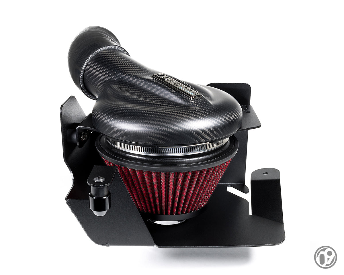 This kit includes an enlarged 73.5mm bore matt-finish carbon fibre filter assembly that evenly distributes cold air being drawn in from the dual-entry air filter and factory front air feed, as well as acting as a thermal barrier, shielding the filter from unwanted engine bay heat.