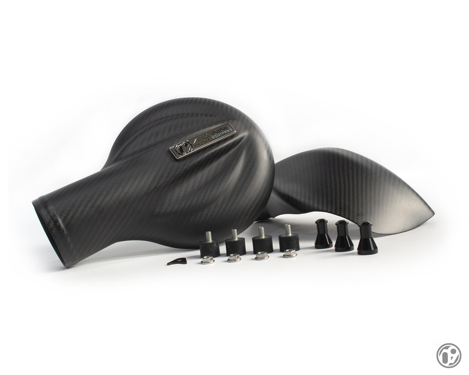 This kit includes an enlarged 73.5mm bore matt-finish carbon fibre air filter assembly that evenly distributes cold air being drawn in from the dual-entry air filter and factory front air feed, as well as acting as a thermal barrier, shielding the filter from unwanted engine bay heat.