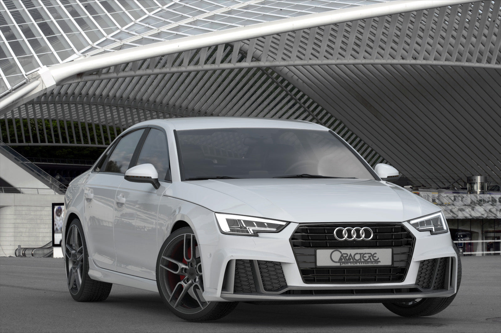 Sharp and powerful, this aerodynamic styling body kit strengthens the already strong framework of the Audi A4. Designed by CARACTERE, it is composed of several precision‑engineered components.