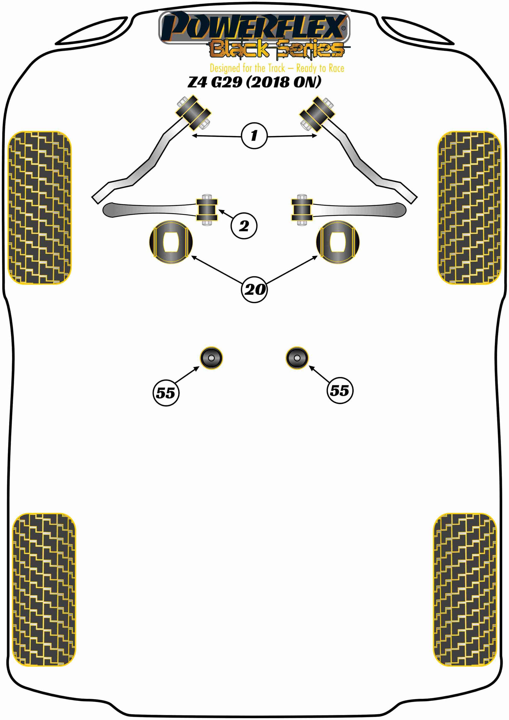 PFF5 is made using our Black 95A durometer material and supplied with outer shells to increase bush stiffness by 300%, controlling longitudinal wheel movement under braking and cornering, and improving longer.durability. It performs as the non bush and allows for +/.0.75of caster adjustment, improving turn.and steering feel, and correcting any steering pull. Combining our Polyurethane technologies with our in.CNC machined stainless steel sleeve allows for easy on.adjustmentsUsing POWERFLEX PFF5 provides a longer tyre life, increase handling of the car and braking stability is also improved. The POWERFLEX PFF5 are 300% stiffer than the OEM bush