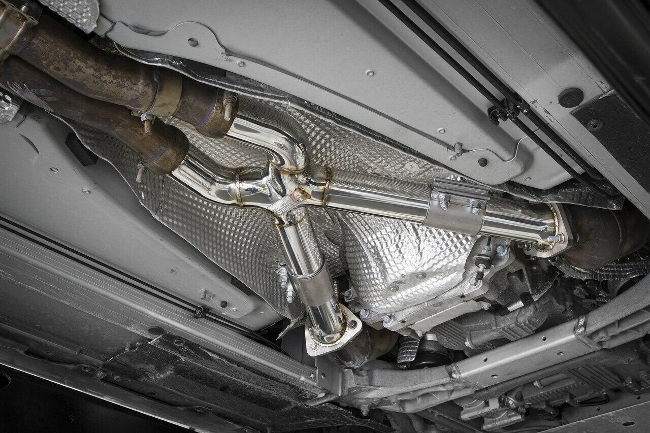 Fits 2011+ Vantage V8 models | The world's only X-Pipe midsection for the 2011+ V8 Vantage adds significant power and fantastic supercar sound by replacing the heavy and redundant secondary catalytic converters; simple bolt-on installation with no cutting or welding required.