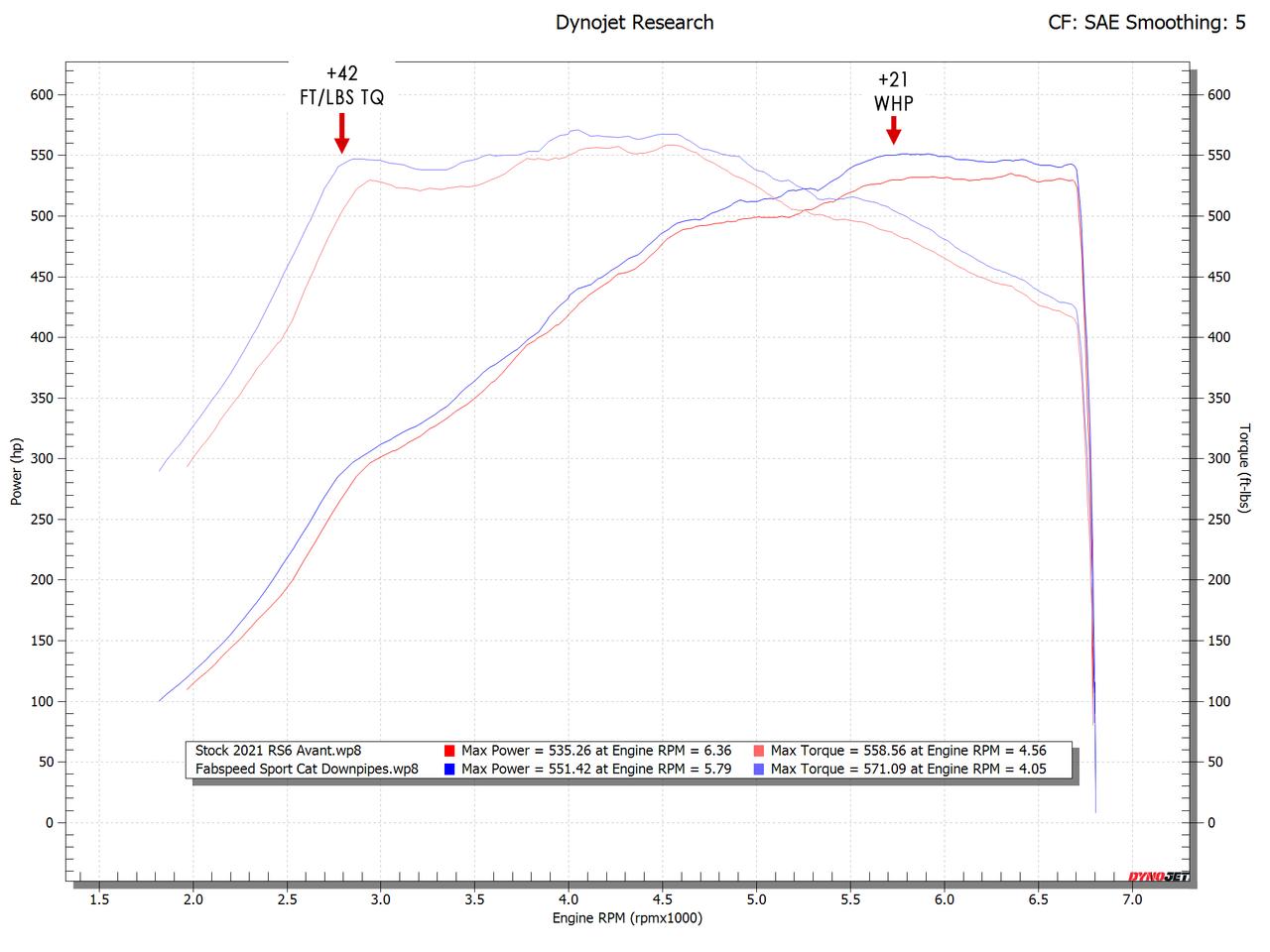 POWER: We dyno tested these Sport Cats on our in-house Dynojet. At the wheels, we saw max gains of +21 whp (or +25 hp at the crank) and +42 ft/lbs TQ.
