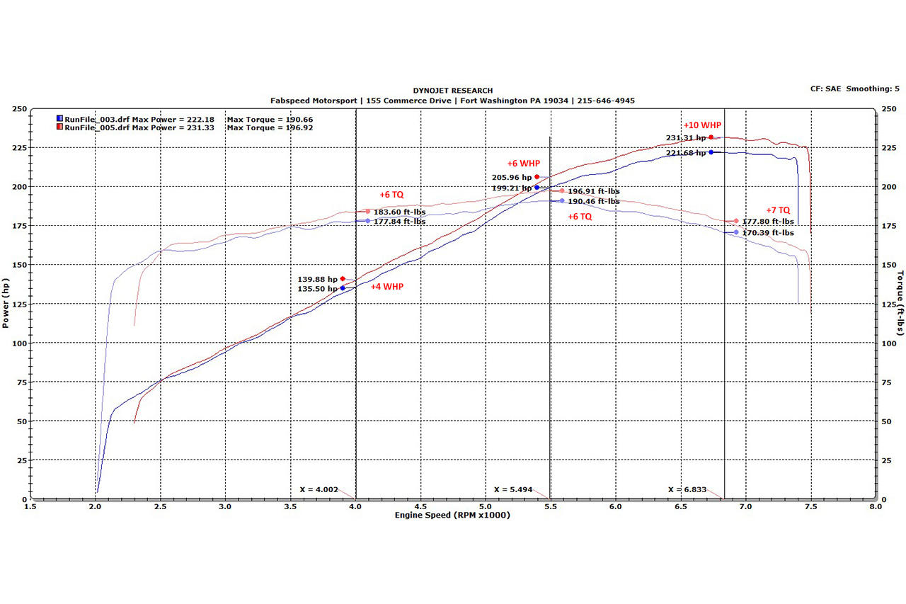On our dyno we saw max power gains of 10 whp and 7 ft/lbs of TQ.