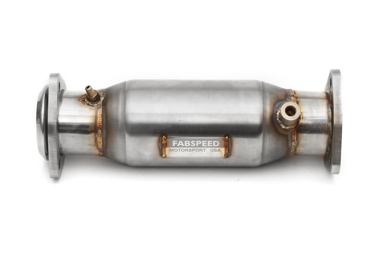 - Fabspeed-proprietary 200-cell HJS high-flowing catalytic converters using T304L stainless steel