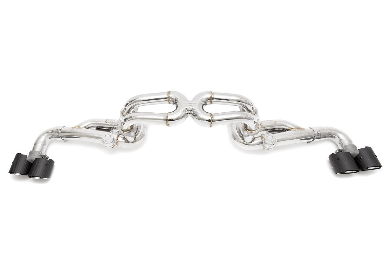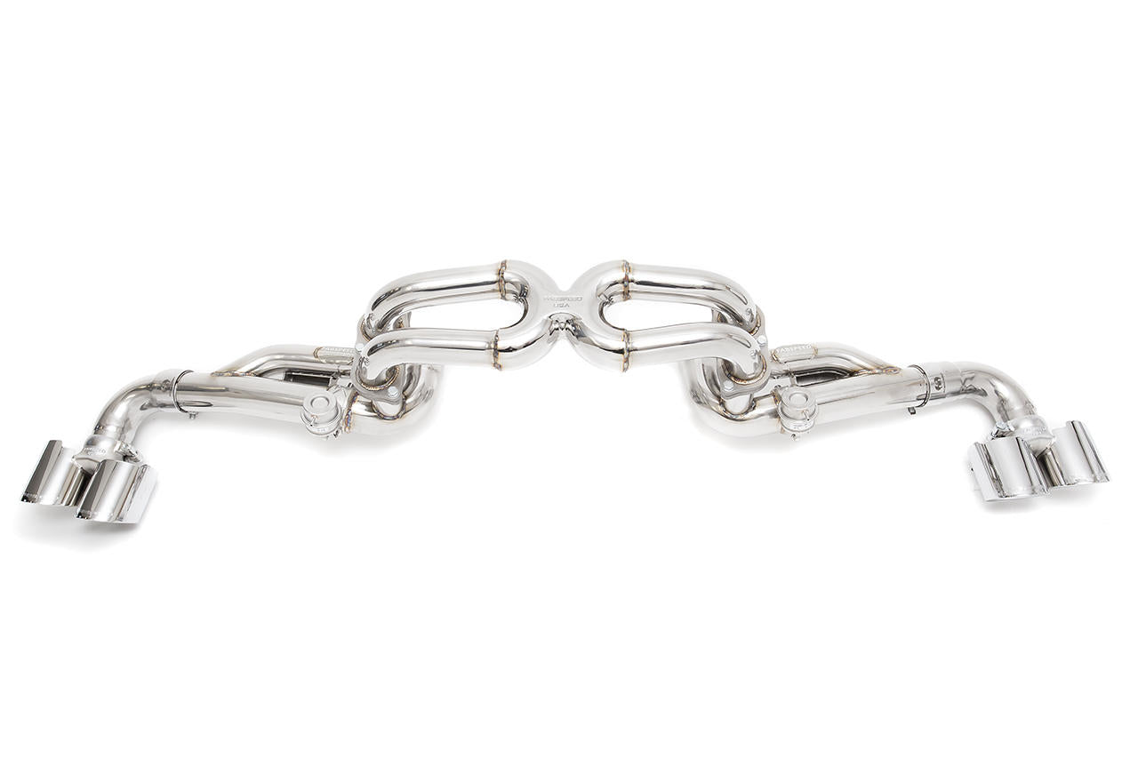 - Optional Fabspeed Deluxe Quad-Style Tips available in your choice of finish (Polished Stainless Steel, Carbon Fiber and Satin Black) For Coupe/Spider vehicles only, or you may choose to re-use OEM tips