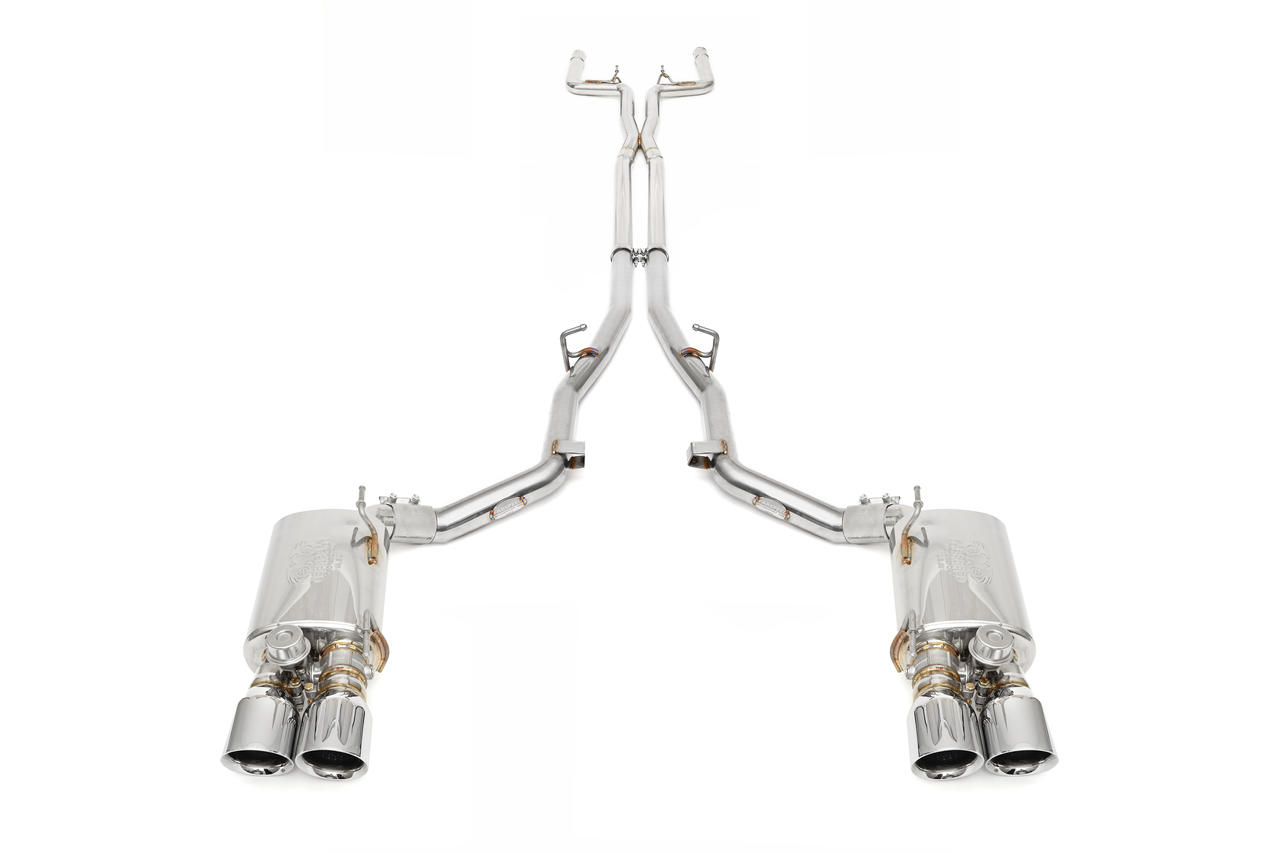 Valved rear mufflers and resonator bypass x-pipe combine to produce a fantastic Italian sports car growl while allowing for full control of the sound level via the factory Sport button