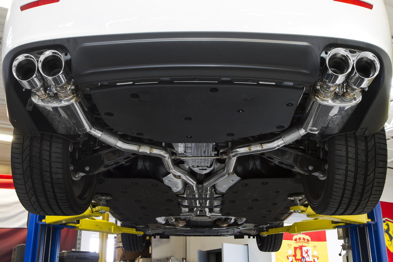 High performance valved stainless steel exhaust system provides true Italian sports car sound while significantly increasing horsepower, torque, and throttle response.