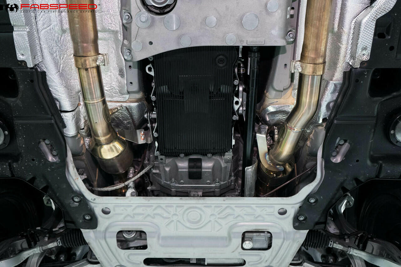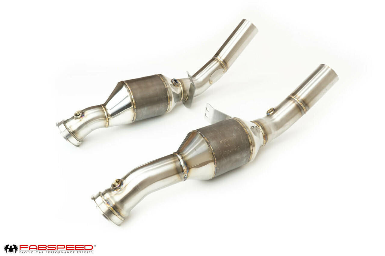 When we looked at the factory ceramic core cats we immediately found an opportunity for improvement. The OEM Cats restrict exhaust CFM flow, limit sound and worst of all, rob performance. Replacing the OEM cats for a set of Fabspeed Sport Cats will net you improved performance with absolutely zero fear of a check engine light.