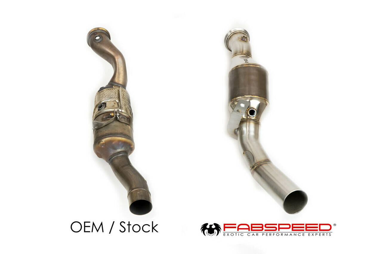 Fabspeed HJS German tri-metallic catalytic converters are State of the Art ultimate emission legal performance enhancing components. Your sports car , SUV and Truck equipped with HJS German catalytic converters is 100% Guaranteed to make more Horsepower, Torque, enhanced sports car, better fuel economy than any OEM stock catalytic converter and or ANY Illegal Cat Bypass pipe downtube. In fact, if you have any older cars, used cars and or cars with FAILING, DELETED or Butchered catalytic converters then do yourself a favor and UPGRADE your car with a set of Fabspeed HJS German high-flow trimetallic OBD2 European Certified Homologated catalytic converters. Its the Right thing to do to achieve CLEAN and GREEN Performance and leave absolutely nothing on the table for performance and sports car sound. Furthermore all the Air we breathe globally is not affected by using cat-bypass pipes or stupid solutions like Non Catted downtubes.