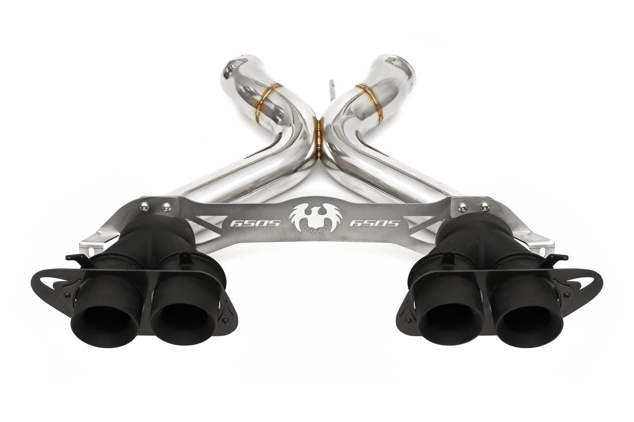 Fabspeed Motorsport's Maxflo ultra high-flowing X-Pipe replaces the heavy and restrictive factory exhaust system for maximum increase in performance and spectacular sports car sound!