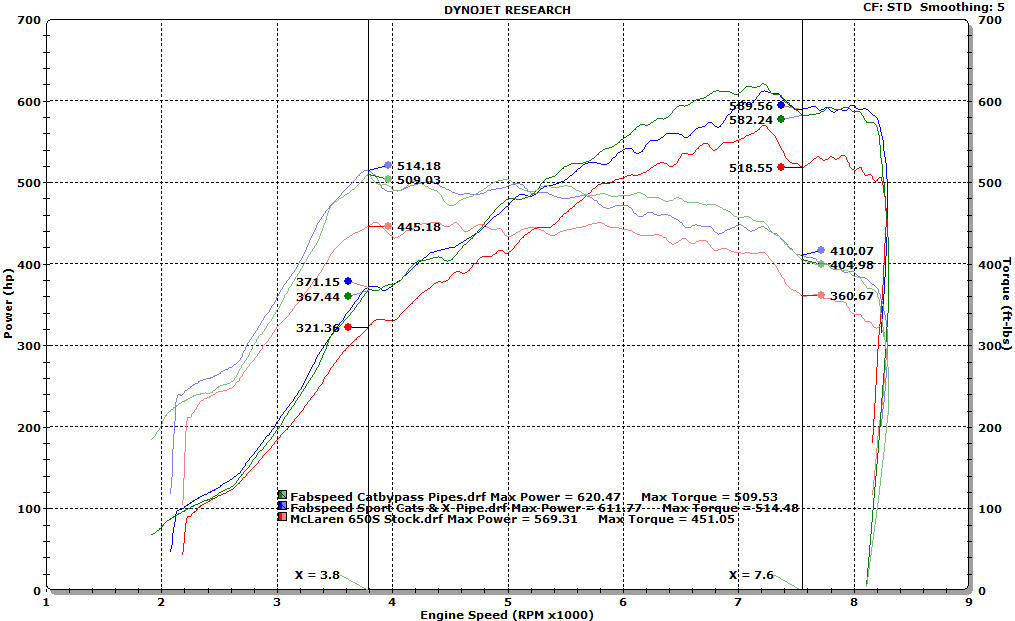 Fabspeed Motorsport was the World's Very 1st company to design, engineer, and dyno develop our McLaren X pipe exhaust system with Solidworks CAD flow analysis in order to maximize the flow characteristics, performance, and world class best in class tonal sound qualities. The Fabspeed X-Pipe was designed to significantly outflow the $5000 factory optional race “H pipe” exhaust system. See video below for detailed analysis and real CATIA simulations. Exhaust flow is smoothed out for a more pleasing, exotic sound and increased power to match.