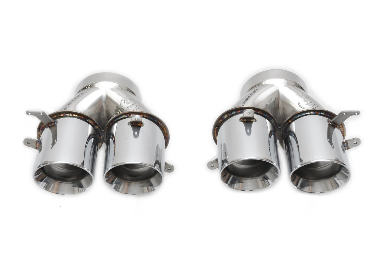 We have an in-house Project McLaren MP4-12C spider and 570S that we use as a continued development platform for new products. This gives us the luxury of extended time to engineer the finest solutions available to extract power and glorious sound guaranteed. Our newest addition to the X-Pipe Exhaust system is our LT-Style tips in spirit of the 675LT and Quad 650S CAN-AM tips. Completely made in house, we cut, brush, and weld each tip by hand and our surrounds are straight from our Flow Mach4 XDCNC 5-Axis Waterjet.