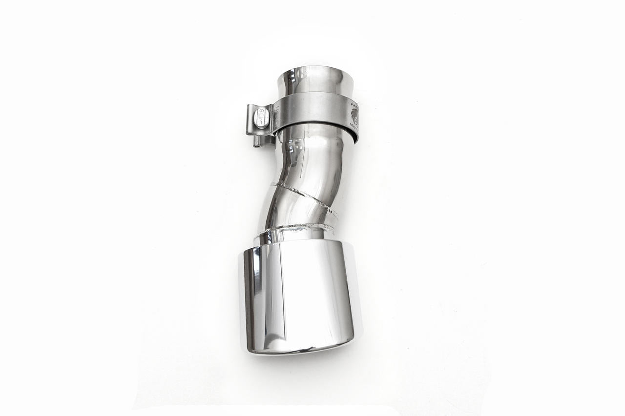 Fabspeed Motorsport mirror polished Stainless steel outlet 4.5" oval tip replaces the factory 964 OEM right-side outlet for a sportier look and finish. Direct replacement bolt-on to the stock 2ndary 964 rear muffler or any rear 964 2ndary CUP muffler bypass pipe.