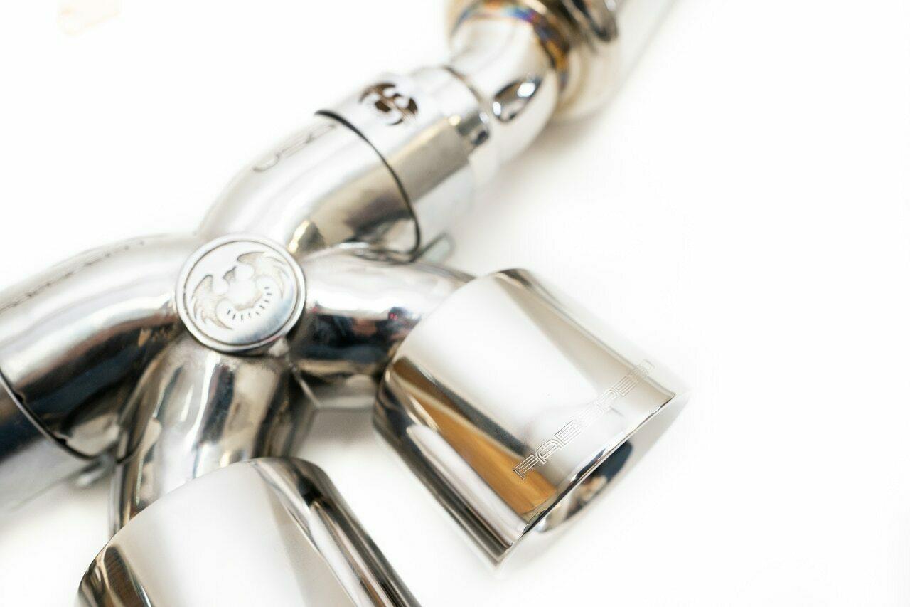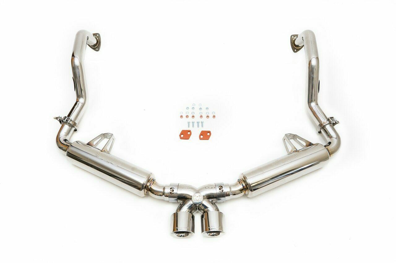 Our Supercup Exhaust System is a loud and aggressive performance exhaust system designed with track use in mind. This system is a lot lighter than the factory system and flows much better. The Supercup is significantly louder than our Maxflo Exhaust option, but if you're looking for a very aggressive exhaust note and you're not worried about waking up the neighbors, this is the system for you! If you want the best of both worlds, check out our TrackTec Valved Exhaust, which will be slightly louder than the Supercup with the valves open and just as civilized as our Maxflo system with the valves closed