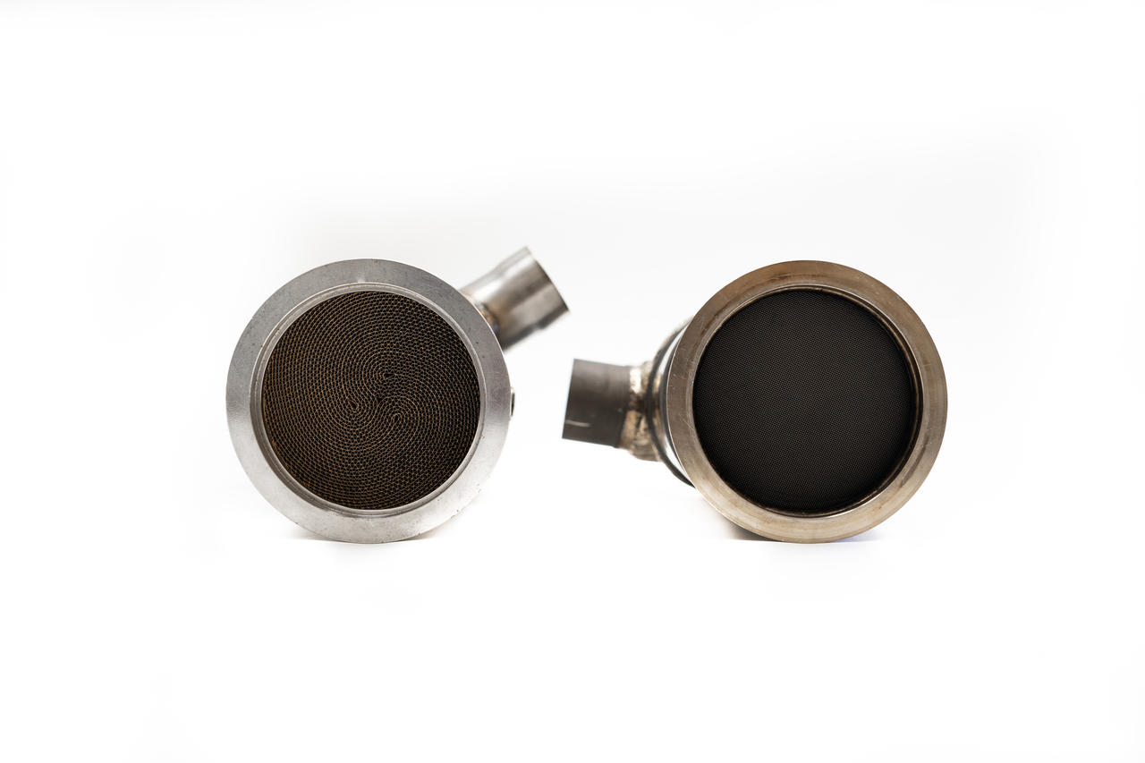 HJS German proven catalytic converters offer the Worlds very best high performance power increases along with enhanced Sportscar sound and long term proven durability. Any and all other brands of catalytic converters simply and quickly degrade , lose power and give the car a Check Engine Light and or do not scrub the exhaust systems as well as the OEM catalytic converters.