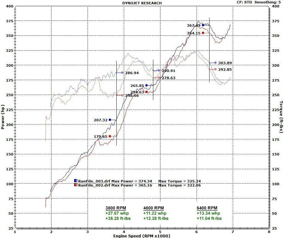 - Dramatic improvement in sports car sound and power throughout the RPM range; over 27 whp and 38 ft-lbs of torque at 3800 RPM