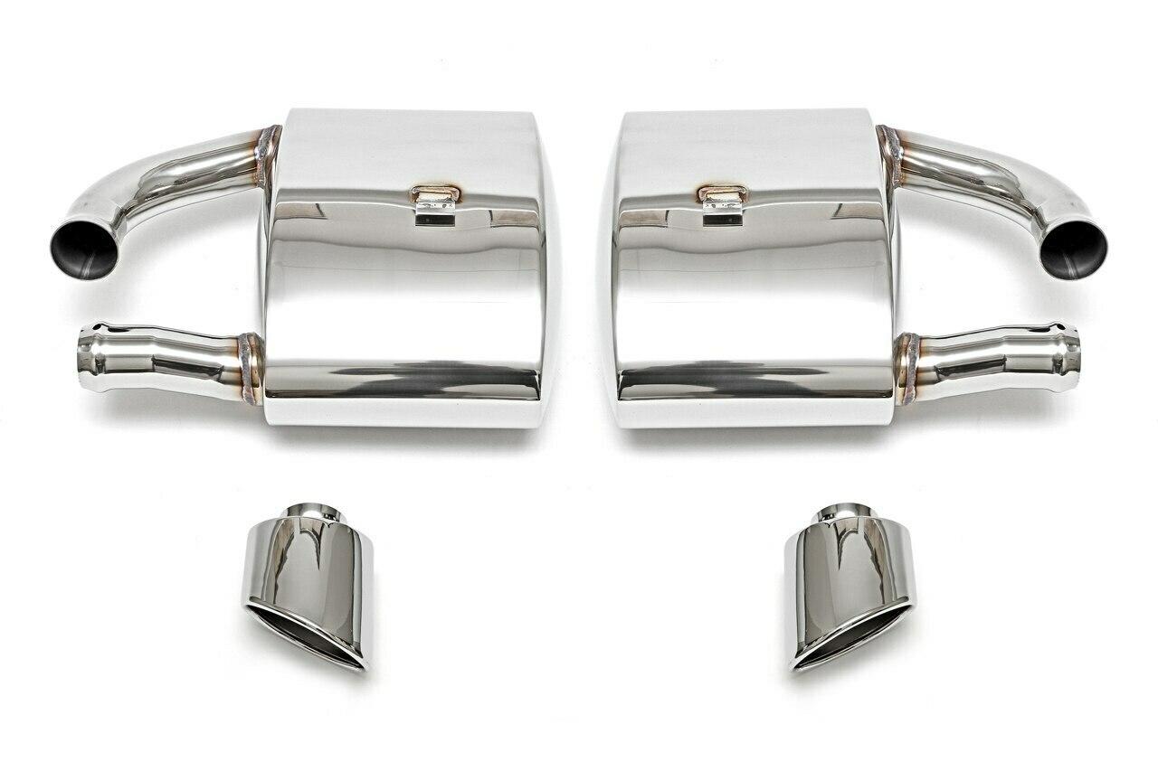 Our precision-engineered MAXFLO cat-back exhaust system for all Porsche 993 Carrera will open up the engine's airflow in order to increase performance where it counts. The high-quality T304L stainless steel mufflers reduce the weight of the rear end by 15 pounds 7 kilograms compared to the heavy restrictive Porsche 993 OEM mufflers. Fabspeed Motorsport MAXFLO mufflers performance exhaust is one of the easiest ways to see serious improvements, with a boost of 17.5 crank horsepower and (14 horsepower to the wheels) all emissions legal Clean and Green Performance. tm