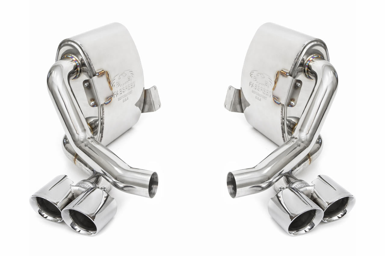 Fabspeed recommends using these Side Mufflers in conjunction with a Center Muffler Bypass X-Pipe for non-PSE equipped cars. There is not a significant sound advantage to using these Side Mufflers alone in conjunction with the factory non-PSE center muffler.