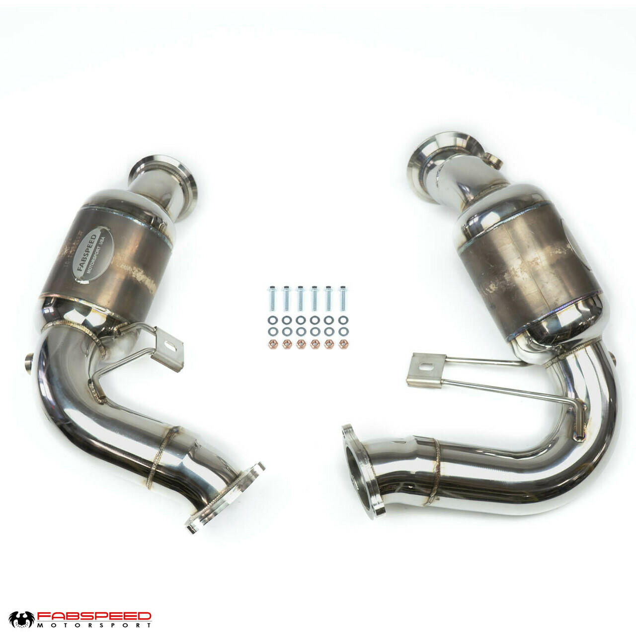 Fabspeed HJS German tri-metallic catalytic converters are State of the Art ultimate emission legal performance enhancing components. Your sports car , SUV and Truck equipped with HJS German catalytic converters is 100% Guaranteed to make more Horsepower, Torque, enhanced sports car, better fuel economy than any OEM stock catalytic converter and or ANY Illegal Cat Bypass pipe downtube. In fact, if you have any older cars, used cars and or cars with FAILING, DELETED or Butchered catalytic converters then do yourself a favor and UPGRADE your car with a set of Fabspeed HJS German high-flow trimetallic OBD2 European Certified Homologated catalytic converters. Its the Right thing to do to achieve CLEAN and GREEN Performance and leave absolutely nothing on the table for performance and sports car sound. Furthermore all the Air we breathe globally is not affected by using cat-bypass pipes or stupid solutions like Non Catted downtubes.