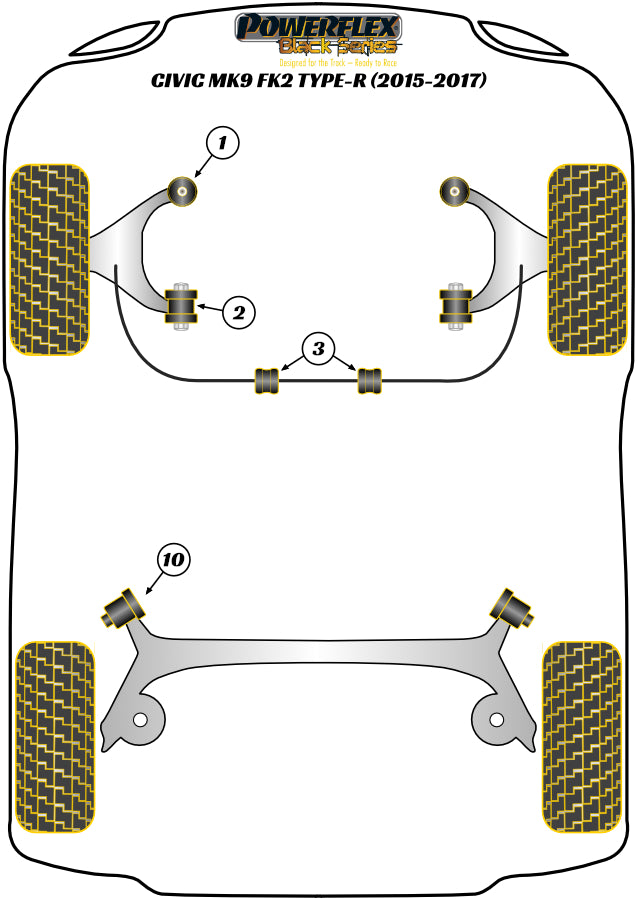 PFF25.Front Wishbone Rear Bush uses our stiffest Black 95A durometer material to restrict wishbone deflection and features a knurled bore for better grease retention.