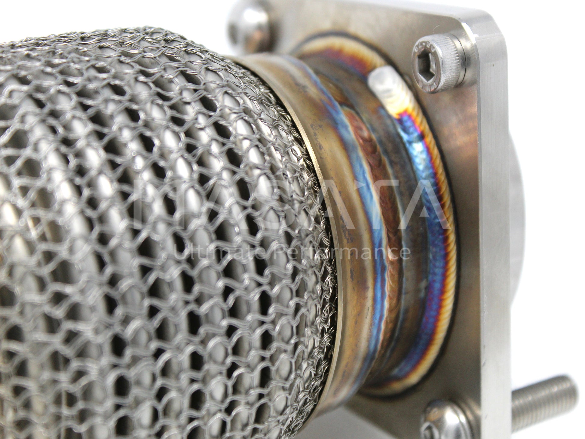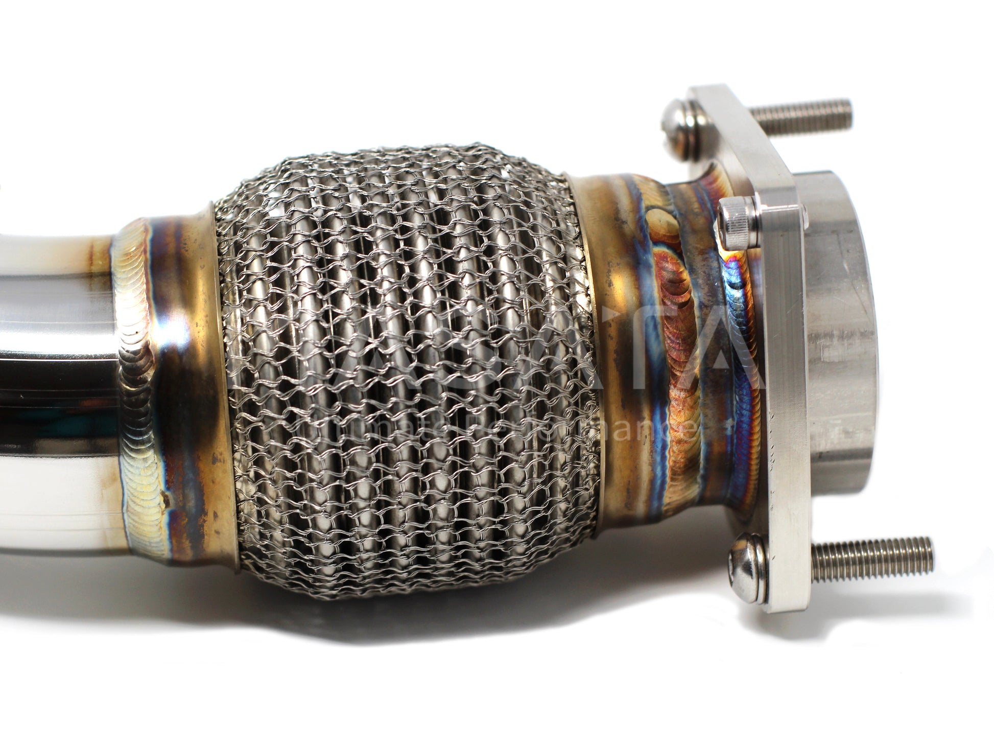 With the unique Masata flex section design similar to the flex section found on the OEM Downpipe, extreme heat produced by the turbo causing expansion which cracks the Downpipe is no longer an issue. The flex section also reduces stress of the turbo flange for a long lasting performance and eliminates unnecessary movements.