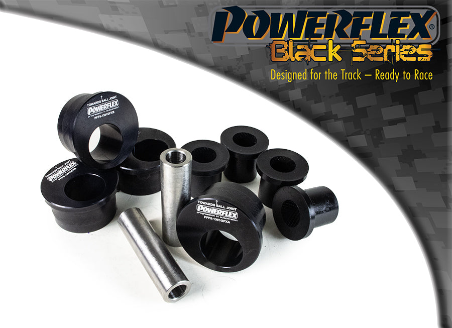 PFF5 features CNC.aluminium outer shells with a fixed offset bore, which ensures wheel geometry is maintained during kerb strikes and under the extreme lateral forces generated by slick tyres and circuit racing. This is supplied with a Black 95A durometer bush with a knurled bore, increasing stiffness (+60%) and durability over the original equipment (OE) rubber bush. This combination results in minimal wishbone stiction and significantly reduced deflection. This bush increases negative camber by 0.75 , achieving reliable, grip.wheel geometry tested and approved by the Mini Challenge, perfectly complementing our PFF5 / PFF5 Front Arm Rear Bush for those serious about track and race car builds, especially when combined with adjustable top mounts.