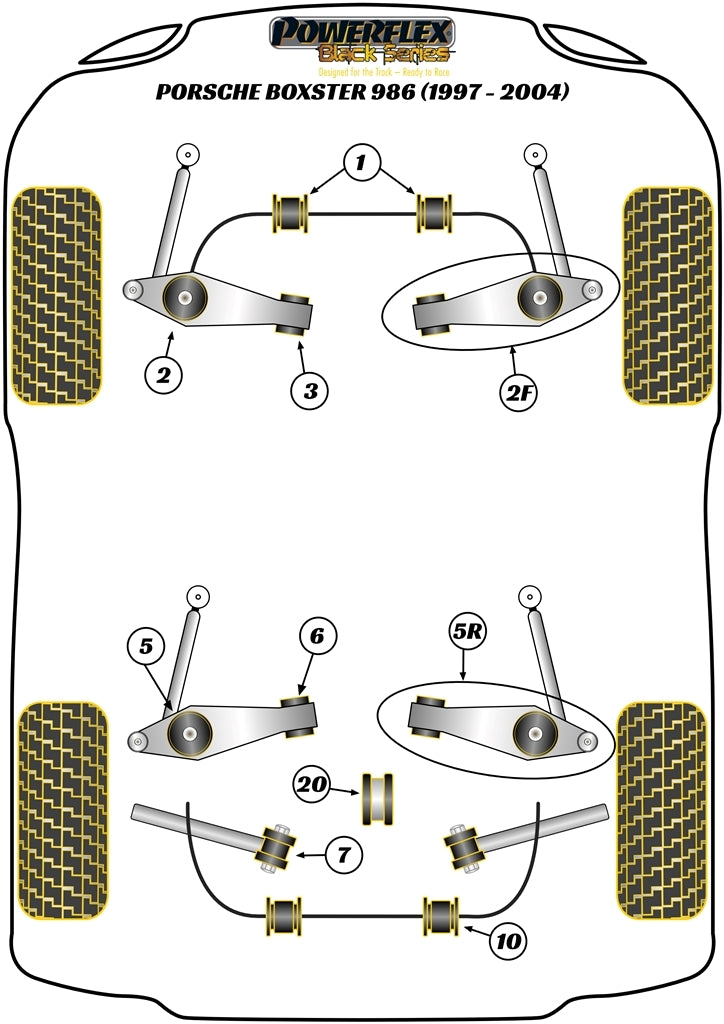 Fits the front of all 996 and Boxster 986 models. It fits the front of the 997 GT2, GT3 & GT3RS models only, all other models of 997 models use PFF57 .Fits the rear of 996, 997, 997 GT2, GT3 & GT3RS, Boxster 986, Boxster 987 and Cayman 987C.