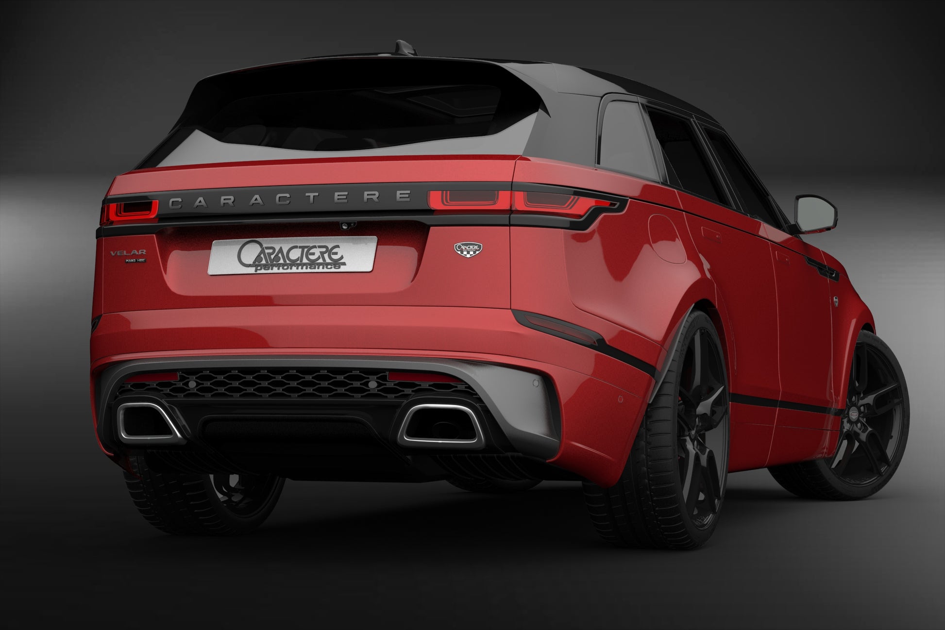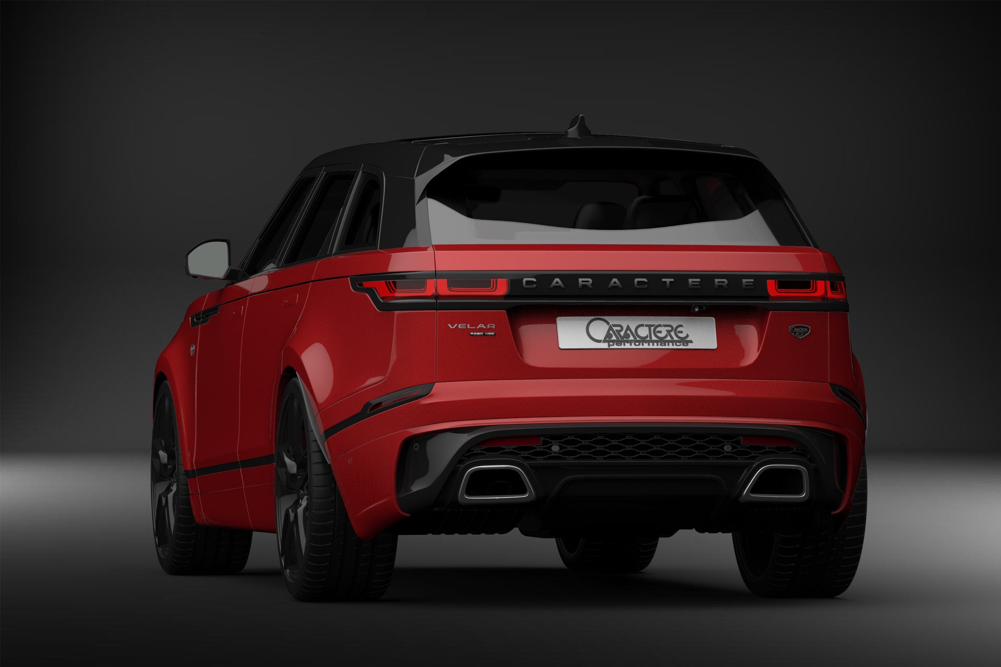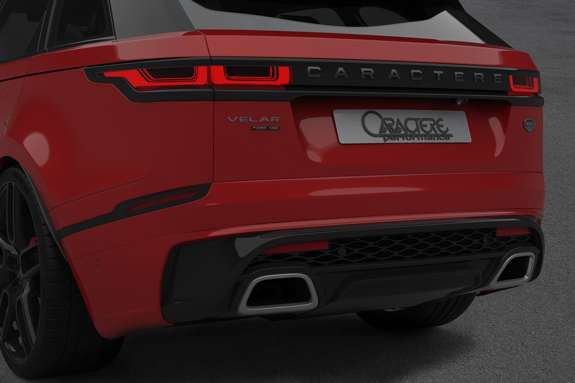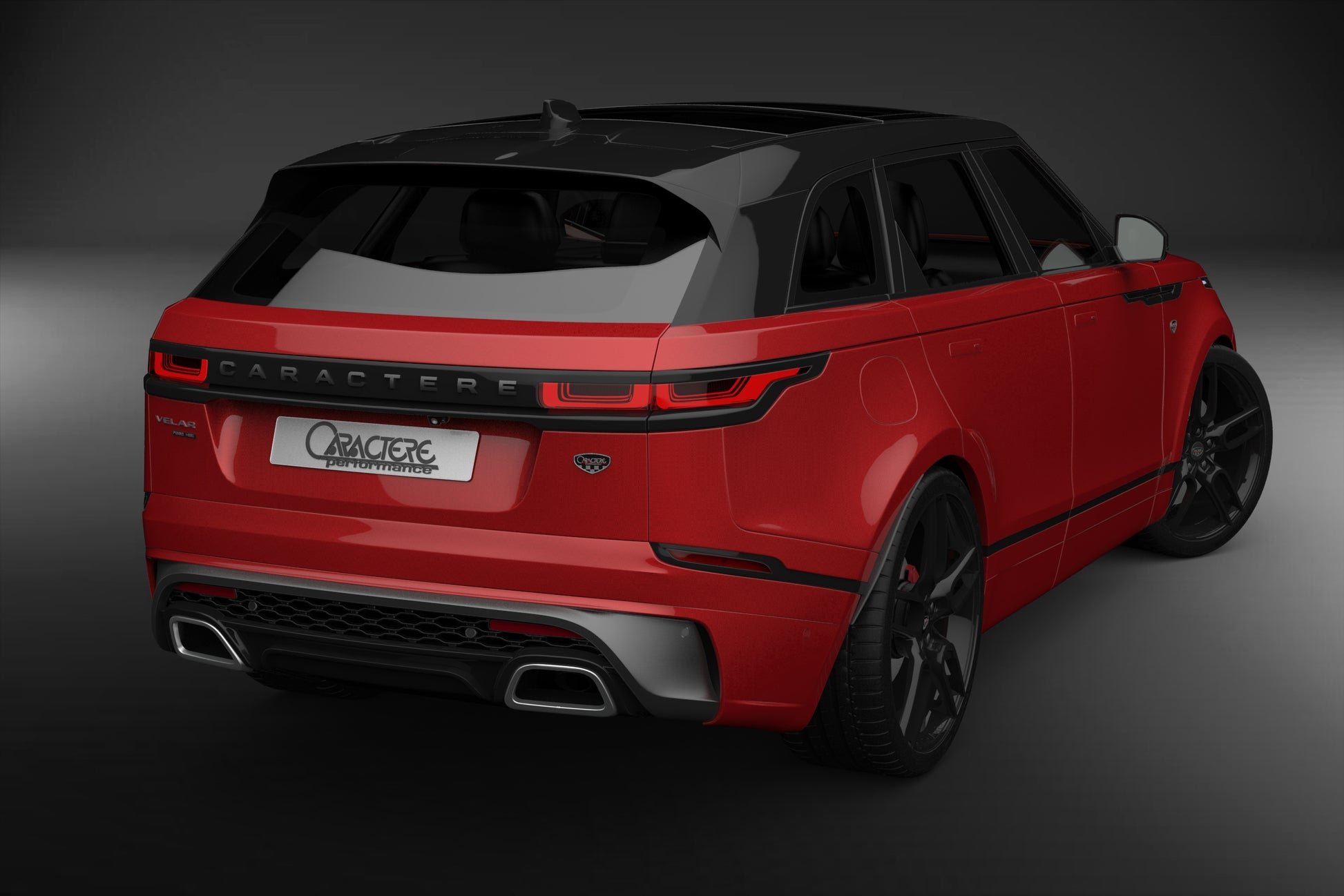 Sharp and powerful, this aerodynamic styling body kit strengthens the already strong framework of the Velar. Designed by CARACTERE, it is composed of several precision‑engineered components.