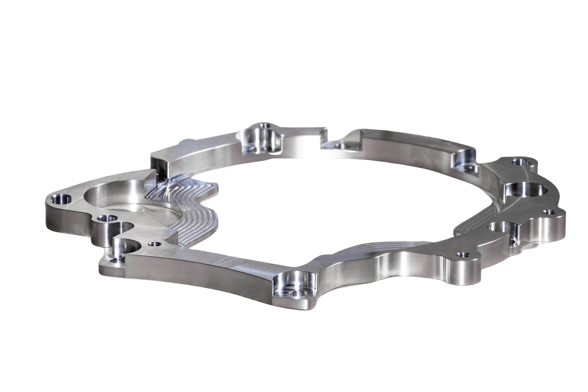 Aluminum adapterÿPlate for conversion and installation of Mazda RX-7 FC gearbox to Mazda MX-5 NA / NB.
