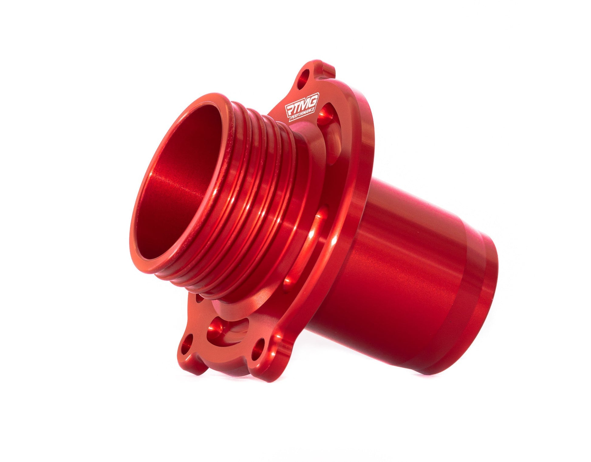 Muffler Delete Adapter for Borg Warner KKK K03 1.8 TSI EA888 Gen 1 & Gen 2 Turbochargers. The K03 Turbocharger has a muffler in the compressor housing which resonates with the turbocharger noise and creates turbulence in the airflow. This results in reduced airflow and performance, especially in high-performance applications.