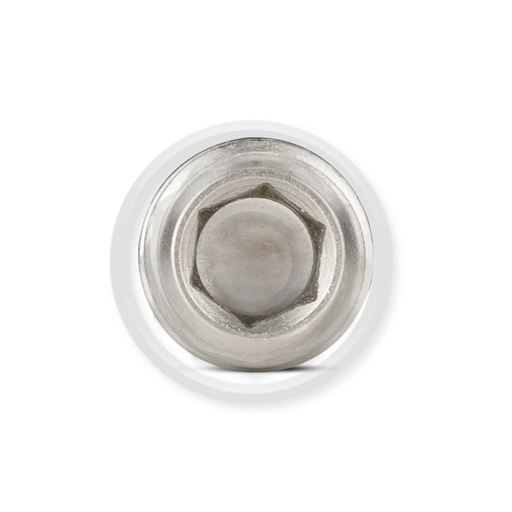 Pro-Series stud bolts have a hexagon socket drive on the head side For screwing in the stud bolts. Thanks to a cone on the engine block side of the stud, these are not supported on the thread flanks when the nuts are tightened, but in the bore of the thread in the engine block. This support protects the threads during frequent assembly of Racing engines. A major advantage of Pro-Series over other manufacturers are the nuts and washers included in the set, as these also have a tensile strength of 1850 N/mmý.