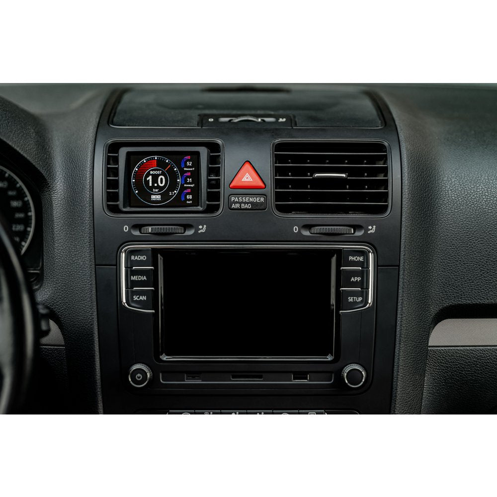We proudly introduce our cutting-edge display For Golf 5 models. This advanced display grants full access to all your engine control unit (ECU) data, and we mean all of it. Our display directly queries the sensors through the Can-Bus protocol and presents the inFormation on our reliable MFD28 display. The Golf 5 Display seamlessly integrates into your vehicle's interior with a custom-made fascia reminiscent of an original part.
